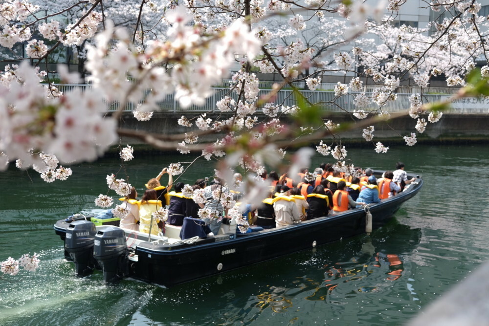 清澄白河の川沿いに咲く桜を船上から楽しむ